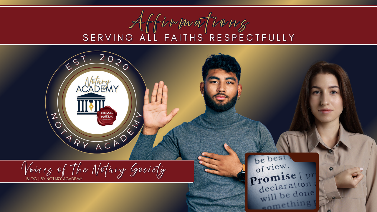 👉 Takeaway: Affirmations allow notaries to serve all signers with respect and dignity. When handled correctly, they reinforce that truth does not depend on faith. It depends on integrity.
